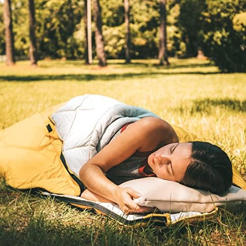 The vibrant yellow color adds a pop of brightness to your camping gear, ensuring easy visibility and making it difficult to misplace amidst your belongings. Whether you’re embarking on a camping trip, hiking expedition, or simply looking for a compact travel pillow, this product has got you covered.