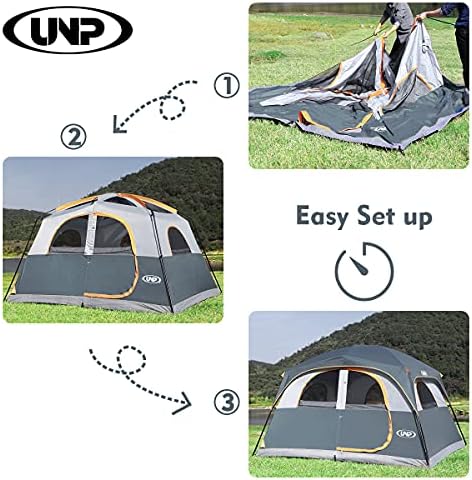 Whether you’re a seasoned camper or new to the outdoors, the UNP Tents 6 Person Waterproof Windproof Camping Tent is a must-have for your next camping trip. Its spacious design, easy setup, waterproof features, and excellent ventilation make it the ultimate choice for family camping, group outings, or even backyard sleepovers. Get ready to create lasting memories with this reliable and versatile outdoor companion.,